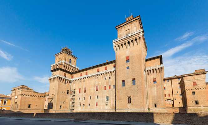 A Piazza Trento e Trieste é a praça mais importante de Ferrara e está localizada no coração do centro histórico. Próximo está o Castello Estense, o retrato da história da cidade. Poucos castelos europeus preservaram tantas características originais, como fosso, pontes levadiças, torres e uma passagem elevada que ainda existe. Na mesma região, está o Palazzo dei Diamanti, construído em 1493 e que hoje abriga a pinacoteca nacional e um museu de arte moderna e contemporânea.